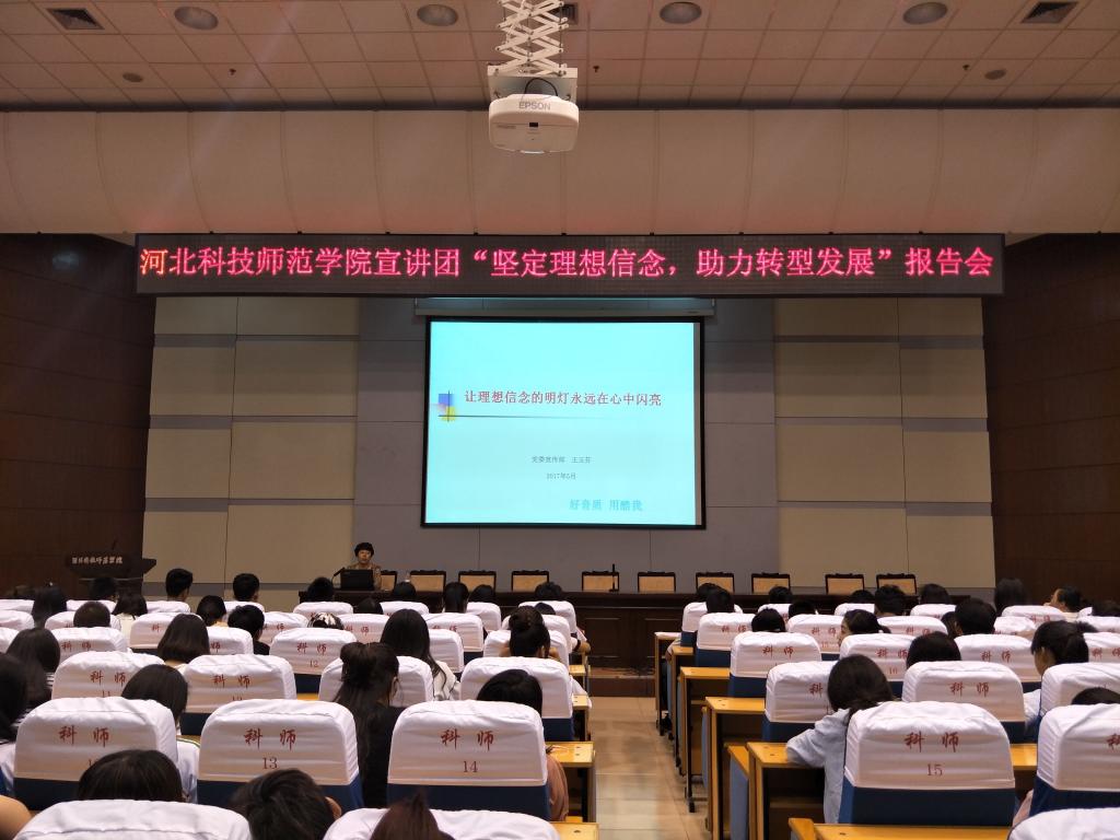 2017年5月19日下午,best365思想政治理论教育宣讲团成员、宣传部副部长王玉芬教授为物理系360余名学生作了题为“让理想信念的明灯永远在心中闪亮”的宣讲报告。