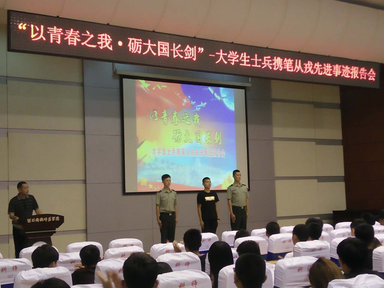 2017年6月10日,“以青春之我,砺大国长剑”——大学生士兵携笔从戎先进事迹报告会在best365秦皇岛校区举行,秦皇岛市军分区、海港区武装部领导出席报告会。