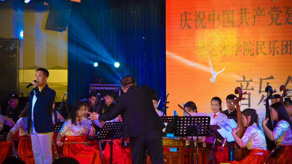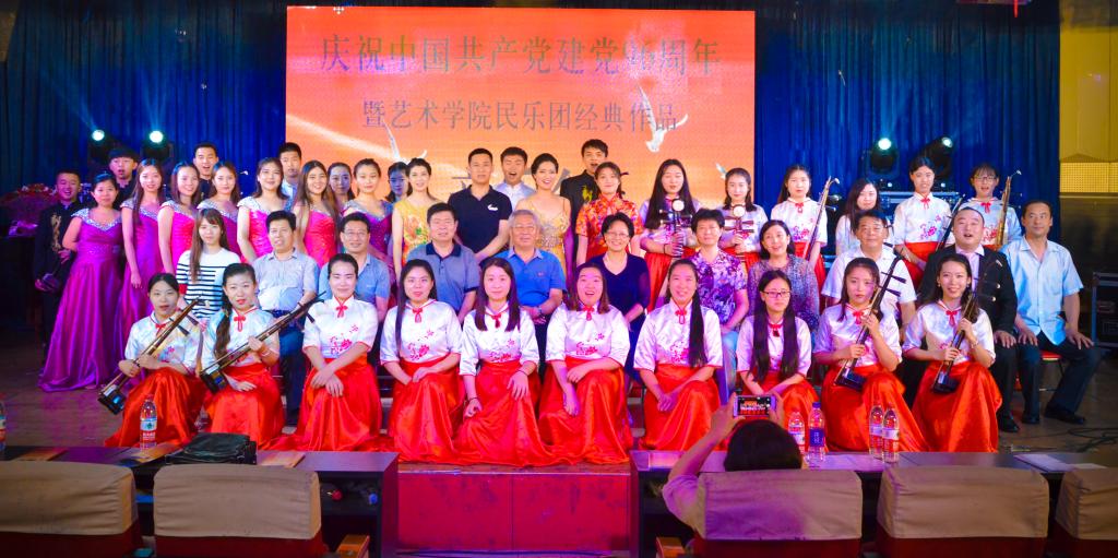 为庆祝中国共产党建党96周年,2017年6月27日晚,best365艺术学院民族乐团在开发区校区学术报告厅举办了“庆七一”中国民族器乐经典作品音乐会。校领导宋绍富、李佩国、杨越冬、孙雪莲,以及部分职能部门领导和广大师生一同观看了音乐会。