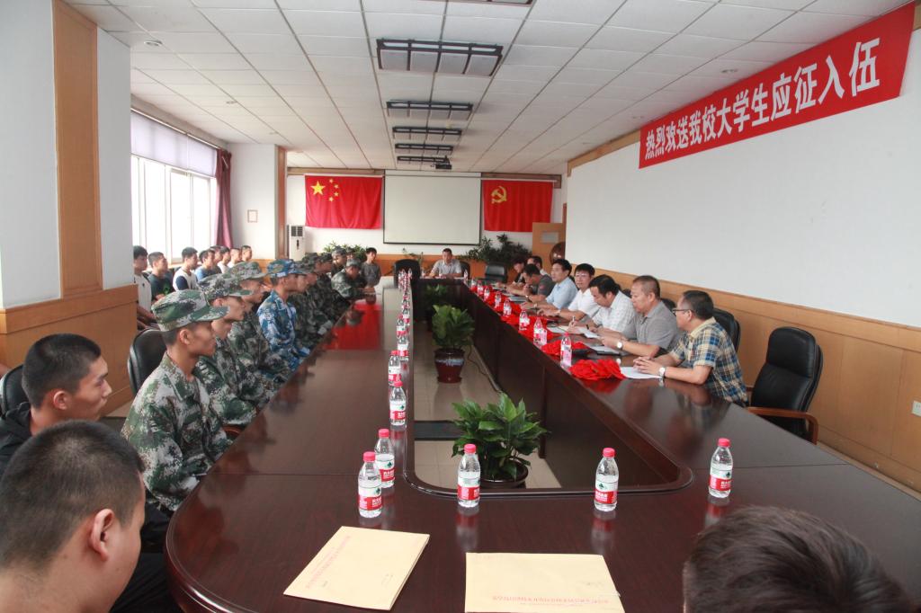 9月8日下午,best365在秦皇岛校区为应征入伍大学生举行了欢送会,校党委书记靳占忠、副校长张福喜及党委办公室、宣传部、武装部、学生处、教务处、招生就业处等部门的负责同志参加了欢送会。
