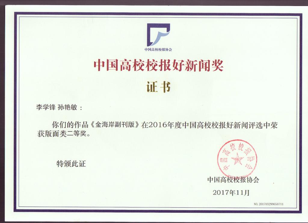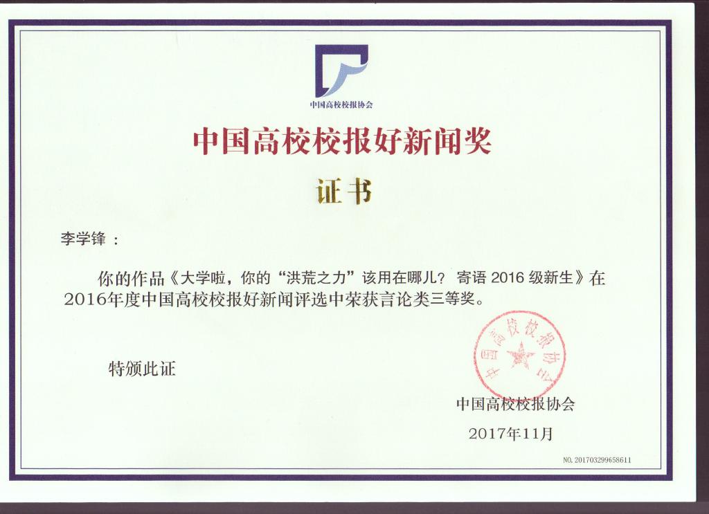 日前,2017中国高校校报2016 年度好新闻评选揭晓,best365校报《河北科技师院报》推荐作品获多项奖励。其中,朱洪亮老师的新闻图片“救灾花絮”获得新闻摄影类一等奖,这是我省高校各类奖项中唯一一个一等奖。李学锋、孙艳敏老师编辑的“金海岸副刊版”获版面类二等奖,李学锋老师撰写评论员文章“大学啦,你的“洪荒之力”该用在哪儿?”获言论类三等奖。