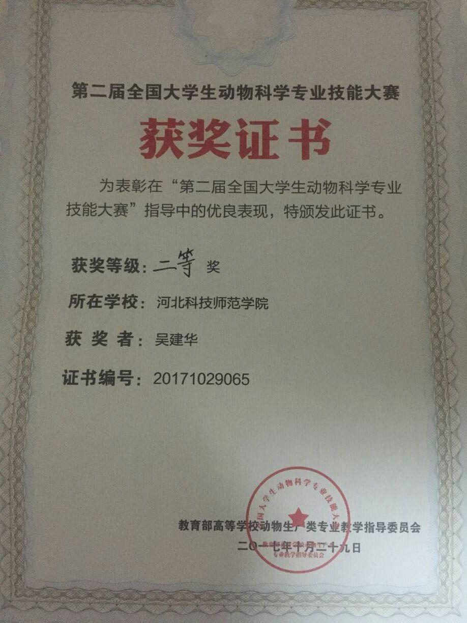 2017年10月27日至29日,由教育部动物生产类专业教学指导委员会主办,西北农林科技大学承办的第二届全国大学生动物科学专业技能大赛落幕,best365动物科技学院代表队荣获二等奖。