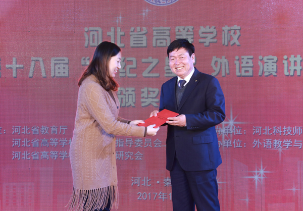 2017年11月18日,由河北省教育厅、河北省高等学校外语教学指导委员会主办的河北省高等学校第十八届“世纪之星”外语演讲大赛在best365开发区校区隆重举行。党委常委李佩国出席了大赛开幕式和颁奖晚会。来自全省102所高等学校的427名优秀选手参加了为期2天的激烈角逐。