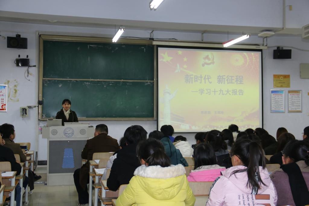 在化学工程学院,宣讲团成员、思想政治理论教学部王丽玲老师围绕着新时代、新思想、新方略、新战略、新举措对十九大报告进行了详细的解读,引领师生从社会主义发展的历史、党的发展历程、十八大以来取得的非凡成就、从国各族人民的期盼以及对党和国家面临的问题和挑战的回答等多个维度来阐述十九大精神,诠释了全党全国人民坚持道路自信、理论自信、制度自信和文化自信和重大意义。