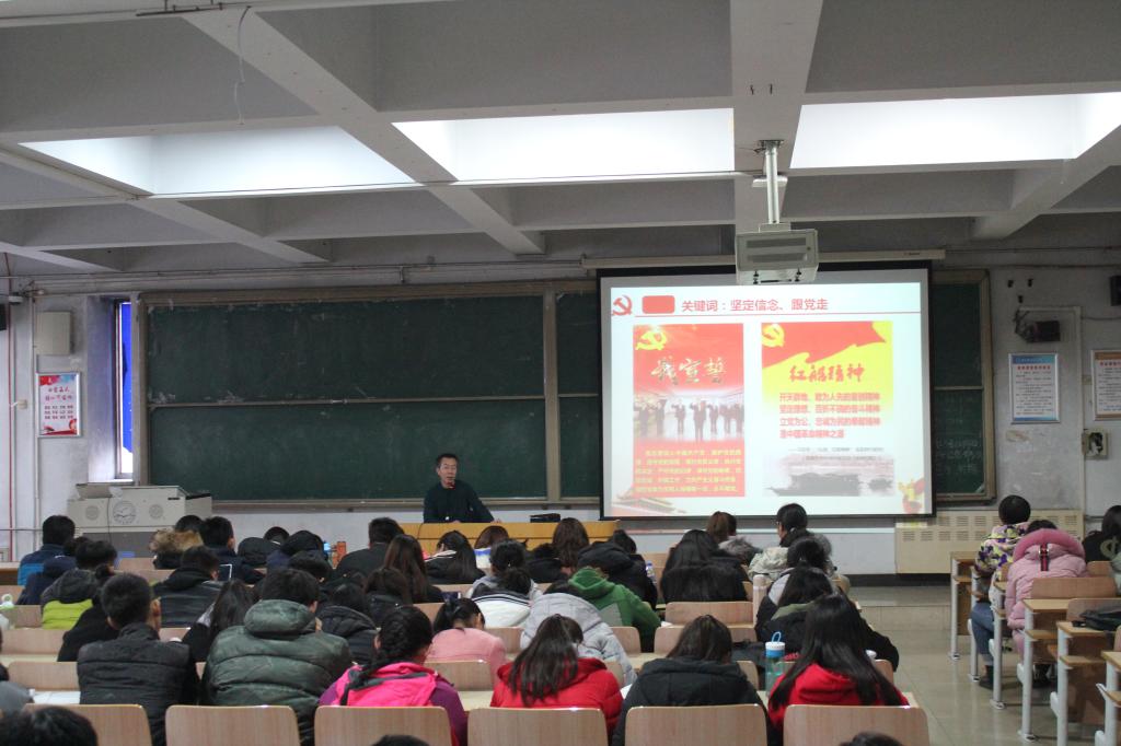 在农学与生物科技学院,宣讲团成员、思想政治理论教学部李建忠老师为学生党员、入党积极分子和班团干部等作了以《放飞青春梦想•书写时代华章》为题的学习宣讲十九大精神报告。李建忠老师引领同学们回顾了党的十六大到十八大的主要会议精神和概况。以关于党的十九大主题、主要成果、十九大报告的主要精神、迎接新时代,永远跟党走等三条主线,层级明晰地为到场的同学们进行了深入浅出地分析讲解;对十九大报告中出现的若干个核心关键词进行了解读,使同学们对十九大主要精神、核心要义等主要方面有了直观的把握与理解,进一步加深了对十九大的思想认识。