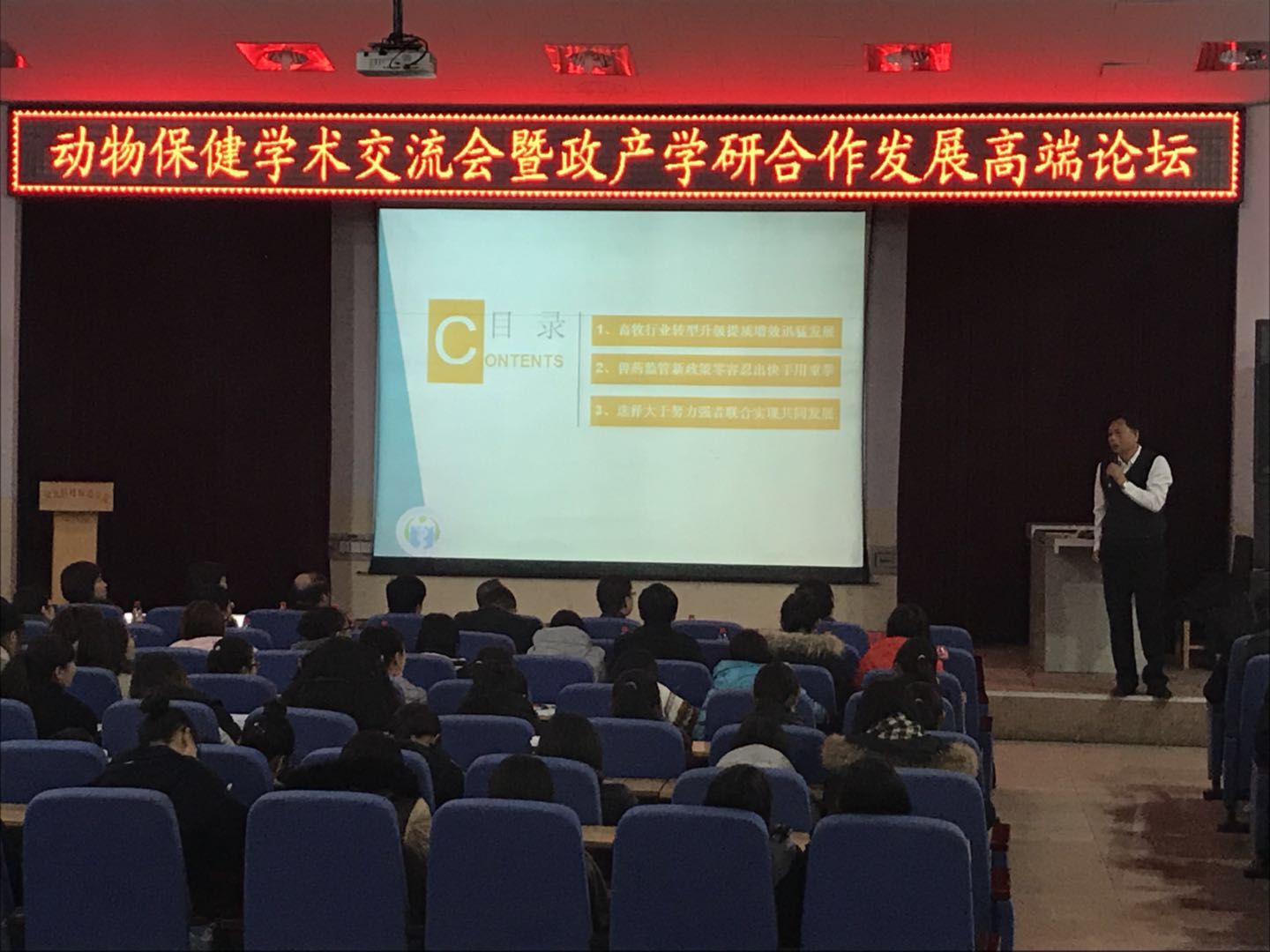 河北省农业厅总兽医师赵彦岭在论坛中介绍了我国动物保健及兽药行业发展现状及监管情况,明确指出了现阶段兽医行业面临的问题及肩负的重大使命,以及对于校企合作模式的肯定与支持。