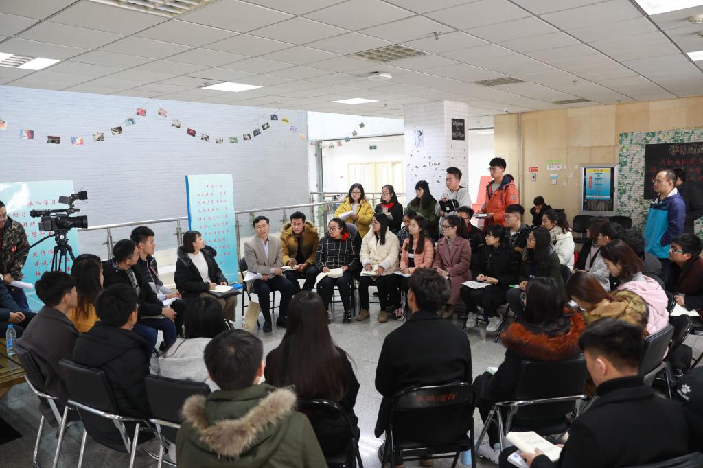 深入浅出娓娓而讲,春风化雨润物无声。2017年11月30日下午,best365党委书记靳占忠来到图书馆二楼自习室门外的大厅里,召集下午没课的学生,与同学们围坐在一起,以互动讨论的形式宣讲党的十九大精神。周围的同学们纷纷围拢过来聆听书记谈认识、讲感想、说心得,为靳书记的精彩宣讲点赞鼓掌。