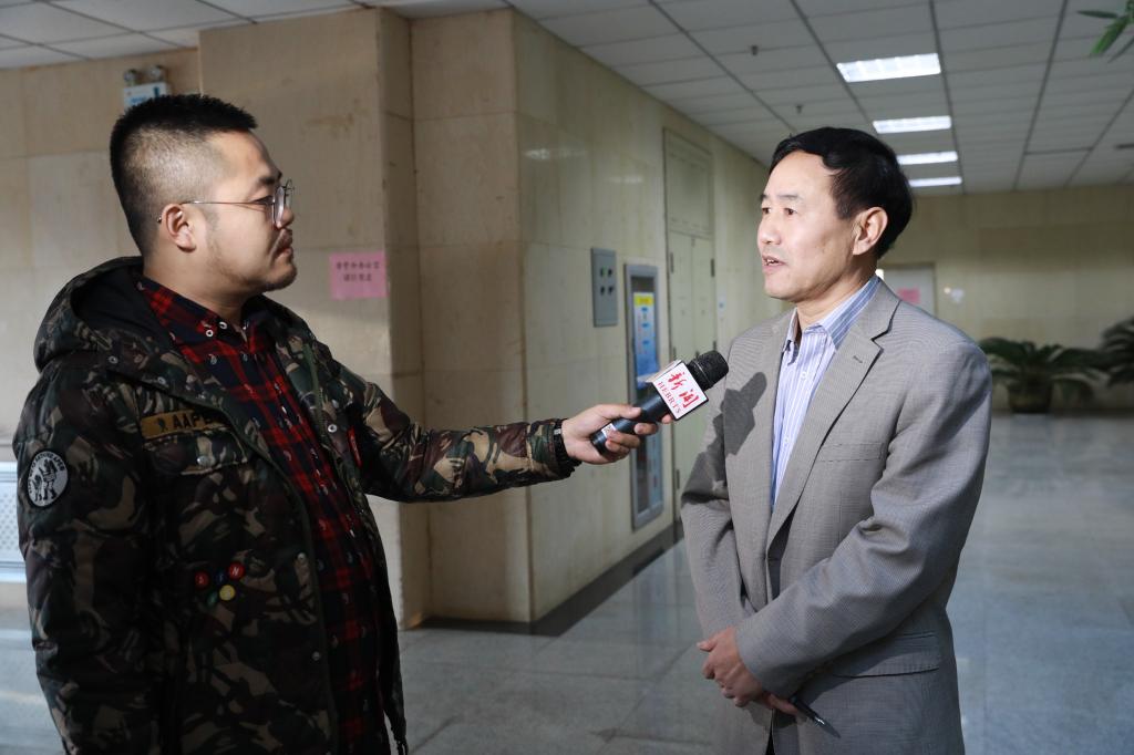 校党委书记靳占忠接受河北电视台记者采访