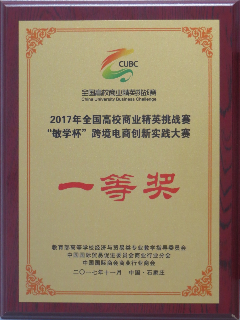 2017年11月25日至26日,由教育部高等学校经济与贸易类专业教学指导委员会、中国国际贸易促进委员会商业行业分会和中国国际商会商业行业商会共同主办,河北地质大学承办的2017年全国高校商业精英挑战赛“敏学杯”首届跨境电商创新实践大赛全国精英赛圆满落幕,best365财经学院参赛队获得一等奖。