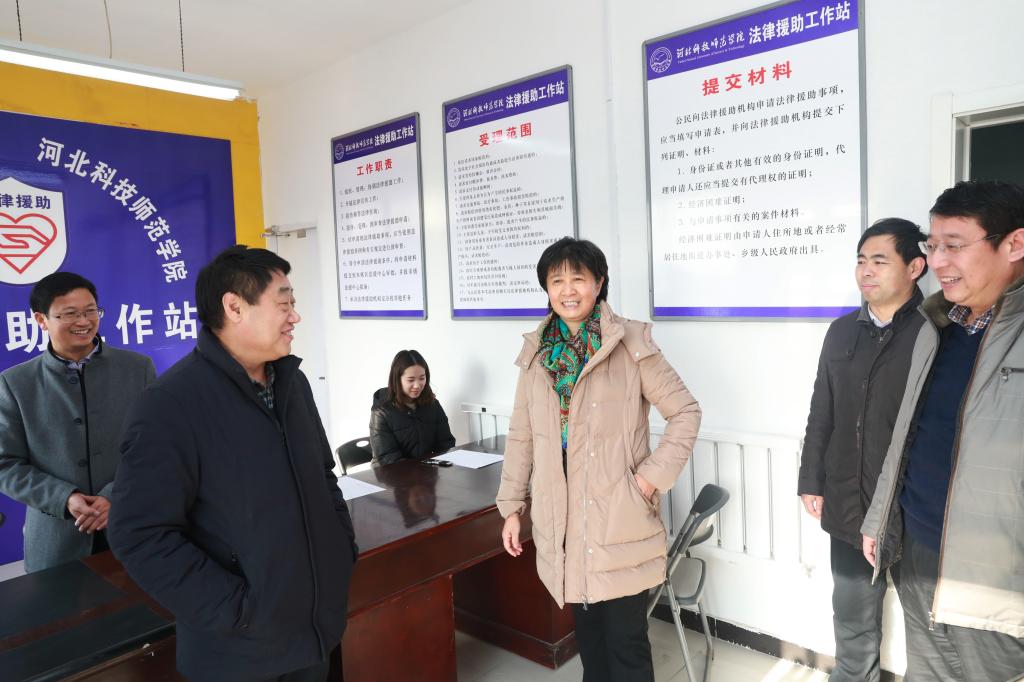 揭牌仪式结束后,秦皇岛市司法局党组书记、局长王秀成同best365党委常委、纪委书记孙雪莲共同参观了法律援助工作站。