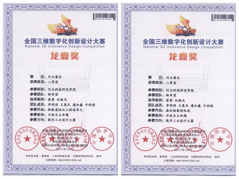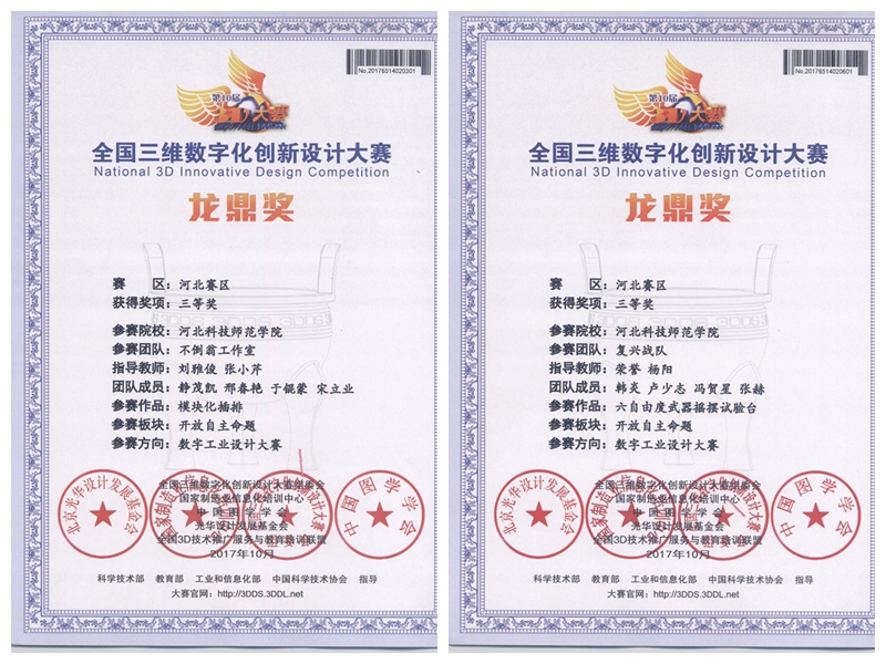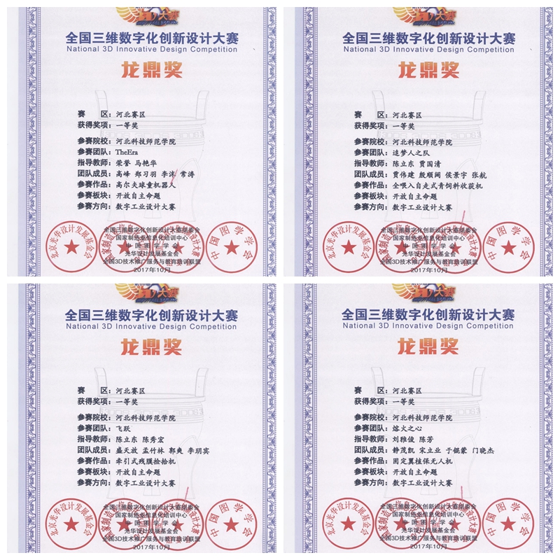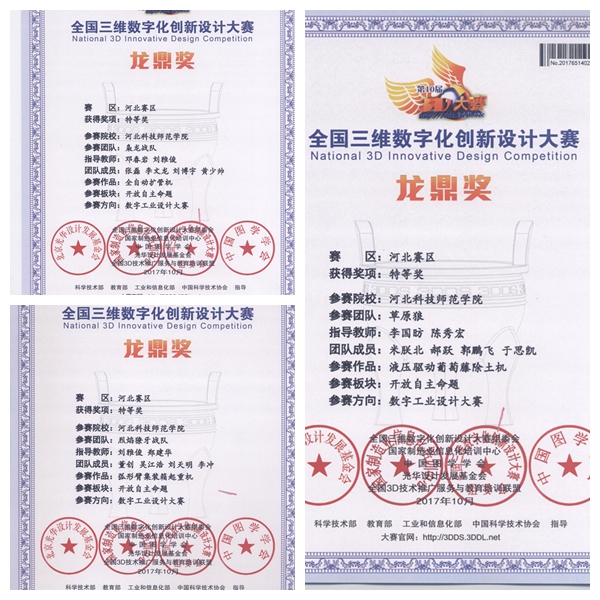 近日,全国三维数字化创新设计大赛组委会发布全国三维数字化创新设计大赛(简称“全国 3D 大赛”)成绩。best365机电工程学院喜获佳绩,共获得大赛(河北赛区)特等奖3项、一等奖4项、二等奖2项、三等奖2项。
