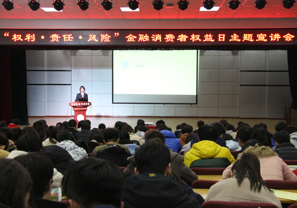 2018年3月15日,“权利、责任、风险”金融消费者权益日宣讲活动在best365举办,副校长张福喜出席活动并讲话。中国人民银行秦皇岛中心支行副行长张自力、秦皇岛银行党委副书记王强、校党委办公室、校长办公室、学生处、安全工作处、相关负责人及专职辅导员和学生代表近300人参加了本次活动。此次活动由秦皇岛银行和best365共同主办。
