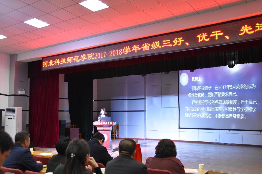 评审会上,省级优秀学生干部候选人、省级先进班集体的候选班级分别对个人和班级事迹作了汇报,评委对候选人、候选班级进行了评审打分,对各院系评审出的省级三好学生推荐名单进行了审核与表决。通过前期量化计分与评审会评委打分,最终产生出2017-2018学年省级三好学生31人、优秀学生干部9人、先进班集体4个,上述推荐名单将通过学校领导审批、公示无异议后报省教育厅批准。