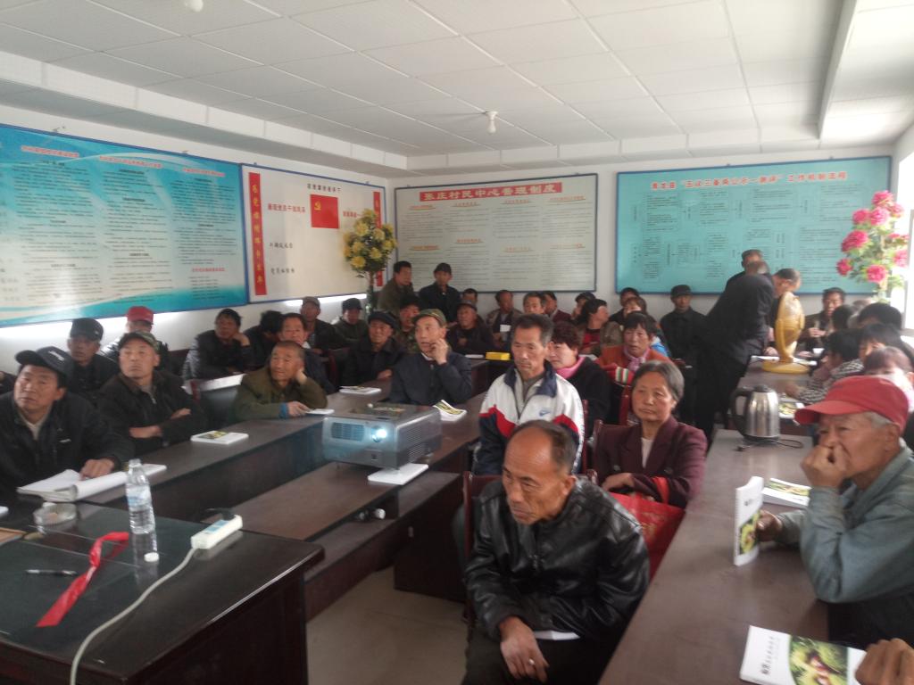 本次培养项目聘请青龙县职教中心老师授课。2018年安排农业技术课程20学时,主要内容以苹果树、粟子果树的季节管理为主,少量课程涉及山地中草药种植、家畜家禽养殖等。职教中心肖希田老师为村民上了第一节课。