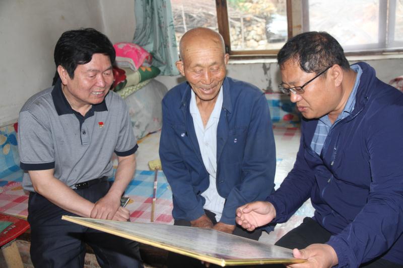 党委书记靳占忠(前排中)走访慰问帮扶贫困户