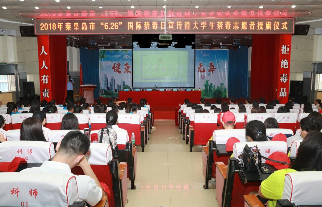 2018年6月26日上午,由秦皇岛市禁毒办和开发区禁毒办联合开展的2018年秦皇岛市“6·26”国际禁毒日宣传活动暨大学生禁毒志愿者授旗仪式在best365开发区校区隆重举行。秦皇岛市委常委、政法委书记、市禁毒委主任闫五一出席活动并讲话,副市长、市公安局局长、市禁毒委副主任李春,市委政法委副书记、市综治办主任王立新,市禁毒办主任、市公安局副局长佟晟兴,开发区政法委书记、公安局局长徐文龙,best365党委书记靳占忠,副校长张福喜出席了活动。市委宣传部、市文广新局、市中院、市教育局等相关单位负责人,禁毒民警代表,best365学生处、安全工作处等部门主要负责同志以及开发区校区部分师生共800余人参加了活动。