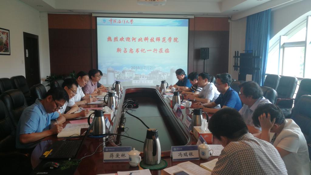 为进一步推进筹建河北海洋大学工作,了解海洋科学与技术发展动态,7月2日下午,校党委书记靳占忠带队,与相关校领导和教务处、科研处、人事处、研究生部等部门负责人一行8人,赴中国海洋大学、青岛海洋科学与技术试点国家实验室考察学习。