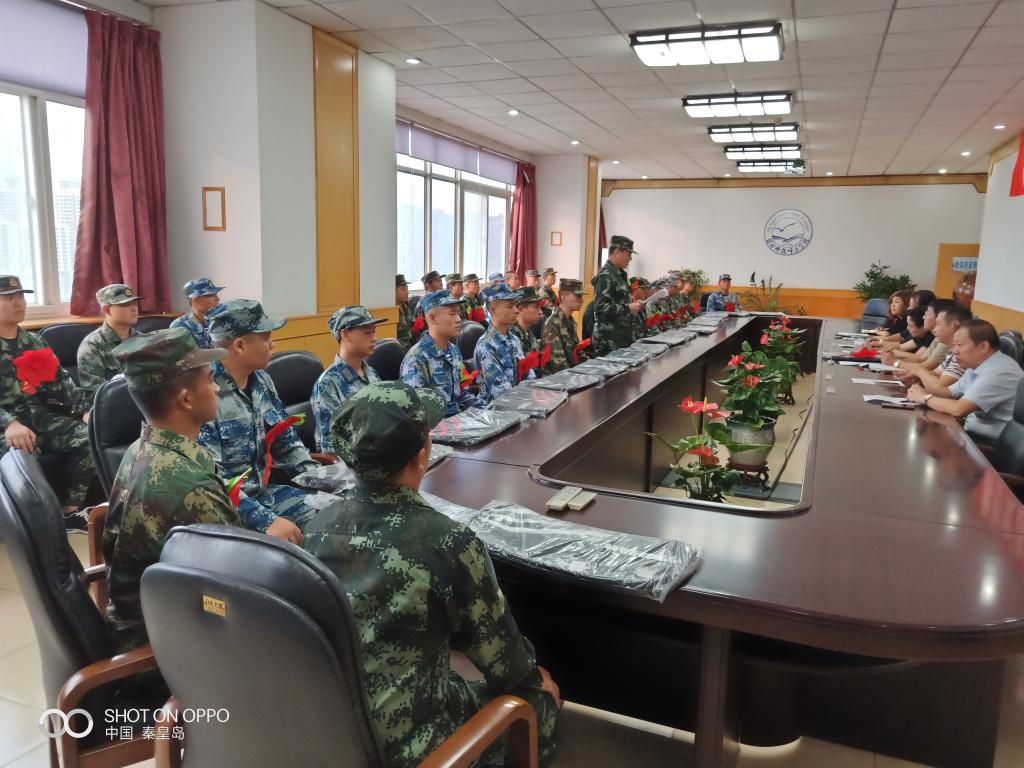 9月10日下午,best365在秦皇岛校区为应征入伍大学生举行了欢送会。校党委书记靳占忠、副校长张福喜以及校党委宣传部、学生处、教务处、武装部、招生就业处等部门的负责同志参加了欢送会。与会领导为应征入伍大学生佩戴大红花并赠送纪念品。