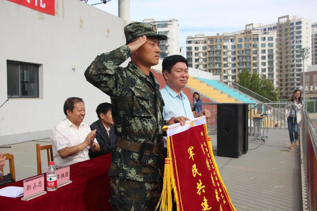 校党委常委李佩国向参训部队赠送锦旗