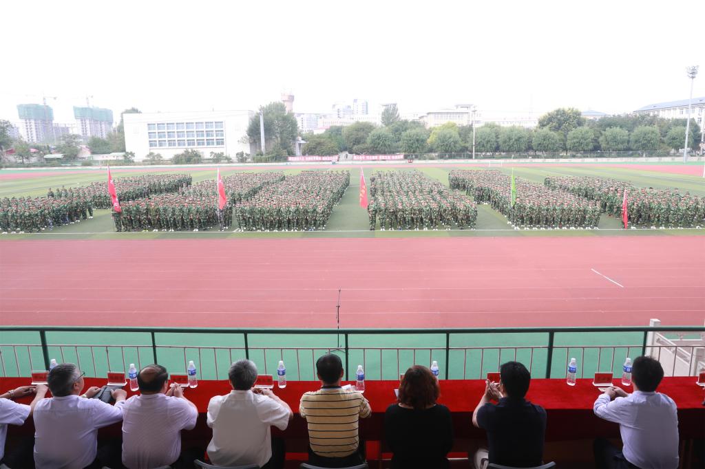 校党委书记靳占忠,副校长杨越冬、张福喜分别在三个校区的开学典礼上致辞。三位校领导首先代表全校师生员工向来自全国各地的5485名新生表示热烈的欢迎!向在军训汇演中获得表彰的团体和个人表示热烈祝贺!向为军训付出艰辛汗水的全体参训官兵表示衷心感谢!他们希望全体新同学尽快调整好心态,尽早适应大学生活,并提三点希望和大家共勉:一是不忘初心,继续保持积极进取精神。大家都站在了同一个起跑线上新时代新目标,学校将以培养担当民族复兴大任的时代新人为着眼点立德树人,希望同学们要不忘初心、不能懈怠,始终保持强烈的求知欲和进取斗志,努力使大学生活过得充实而有意义,为实现自己的人生理想打下坚实的基础。二是善于实践,追求创新。新时代新要求,希望同学们在学习期间,注重培养自己的创新意识,要积极进取,勇于创新、善于创新,在学习、科研和社会实践中做出创造性成果。三是心怀理想,勇于担当。新时代新奋斗,希望同学们志存高远,脚踏实地,饱学知识,锻炼才能,在担当责任中成就事业,享受快乐。