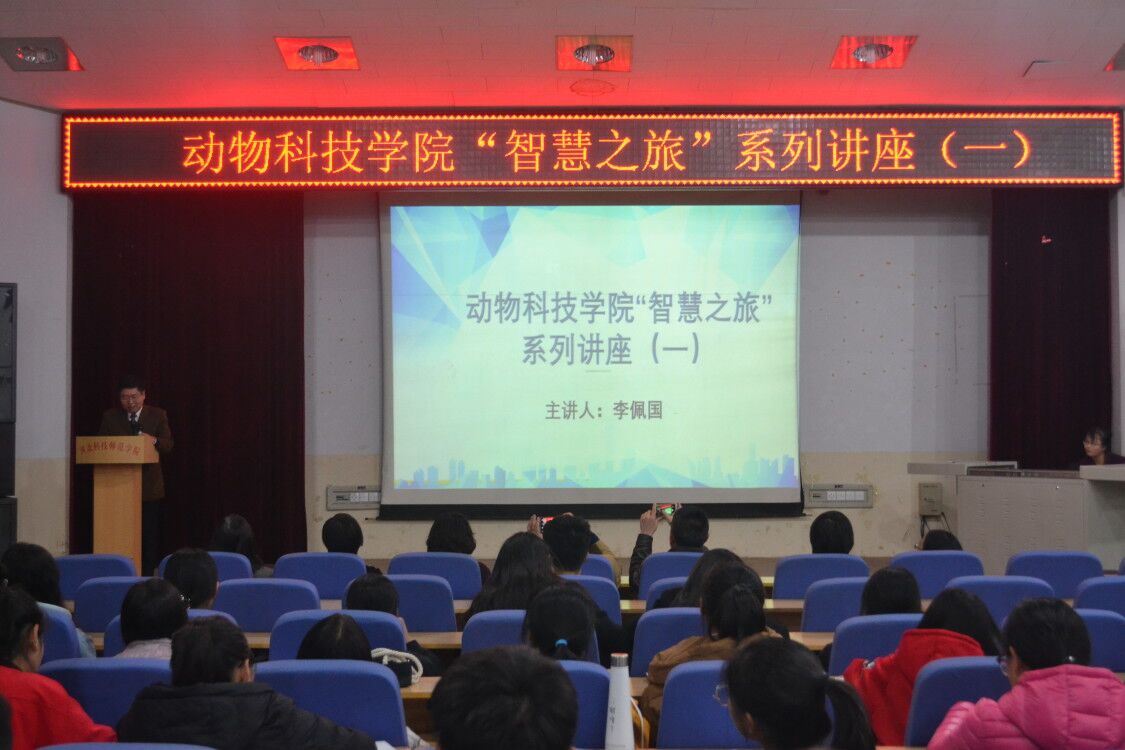 为培养大学生专业素养,开启智慧之旅。2018年10月30日下午,动物科技学院邀请校党委常委李佩国教授作题为“用心开启你的智慧之旅”专题讲座。动物科技学院师生近600人聆听了讲座。