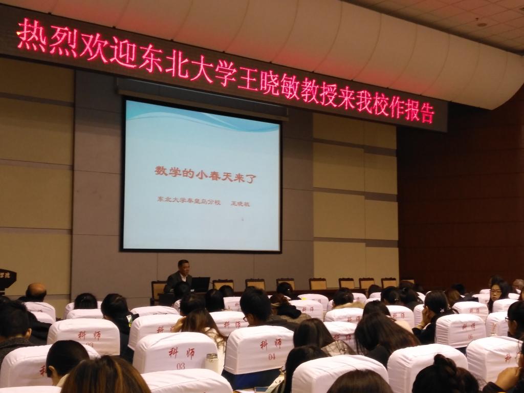 2018年10月30日上午,应数学与信息科技学院的邀请,东北大学秦皇岛分校数学与统计学院王晓敏教授在学术报告厅作题为“从数学到人工智能--数学的小春天来了”的报告。报告会由数信学院行政负责人主持,学院全体数学教师及17级、18级数学与应用数学专业和应用统计学专业全体学生,以及计算机学科相关专业学生400余人聆听了报告。