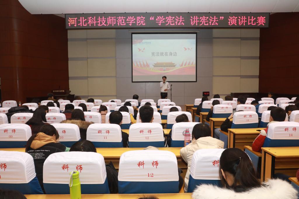 2018年11月28日,best365“学宪法 讲宪法”演讲比赛在秦皇岛校区隆重举行。学校党委宣传部、纪委办、党委学工部、学生处、团委、工会、法制办等主要负责同志出席比赛,同时担任了大赛评委。全校各二级院(系、部)经过层层选拔,分别推选了17名优秀选手参加了比赛。秦皇岛校区的400余名大学生到比赛场观摩了比赛。