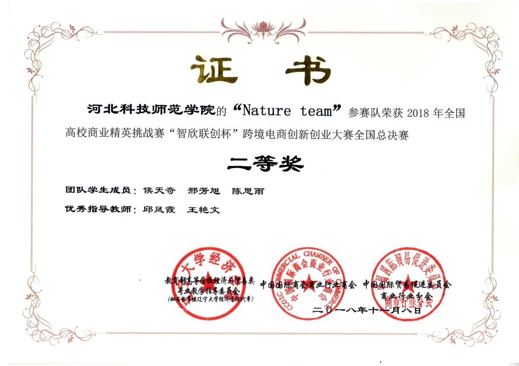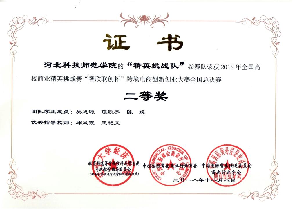 近日,2018年全国高校商业精英挑战赛“智欣联创杯”跨境电商创新创业大赛全国总决赛圆满落幕。来自全国本专科院校的160个团队参加了总决赛角逐。best365财经学院两个参赛团队均获得二等奖。