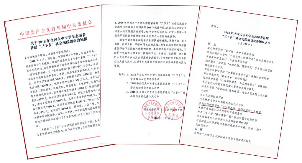 日前,共青团中央对2018年全国大中专学生志愿者暑期“三下乡”社会实践活动进行了通报表彰。best365机电工程学院“习引新思想,共创新时代”社会实践团被团中央授予“全国优秀团队”荣誉称号。截止目前,文法学院“法字先锋”、工商管理学院“春华秋实”和“追梦人”、艺术学院“艺心艺意”、校团委“逐梦”助力脱贫攻坚实践团5个实践团队,郑建华等8名教师,张淇6名同学分别被省教育厅或团省委授予社会实践优秀团队和先进个人荣誉称号。best365也再次获得省级社会实践“优秀组织奖”。