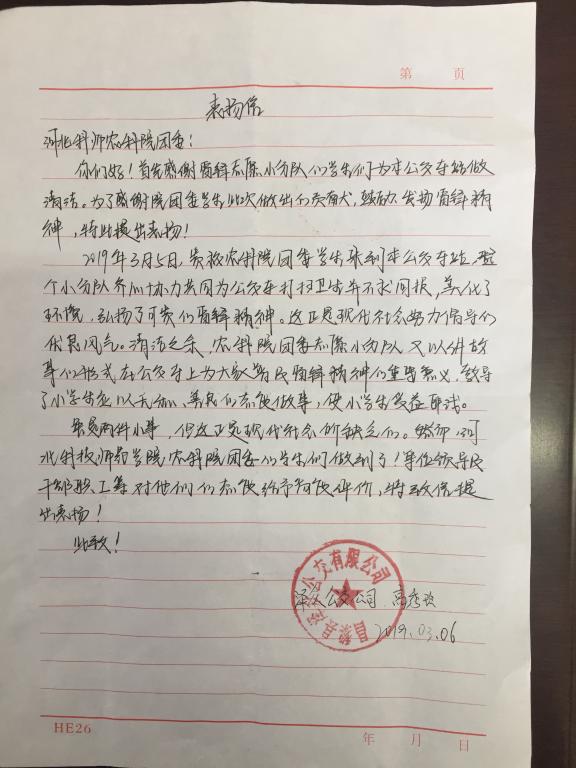 一封手写的表扬信,让农学与生物科技学院的师生感到暖心。近日,昌黎县泽众公交有限公司为农学与生物科技学院写来表扬信,以感谢学院弘扬雷锋精神,组织30名青年志愿者到昌黎火车站前的公交站点开展学雷锋志愿服务活动。