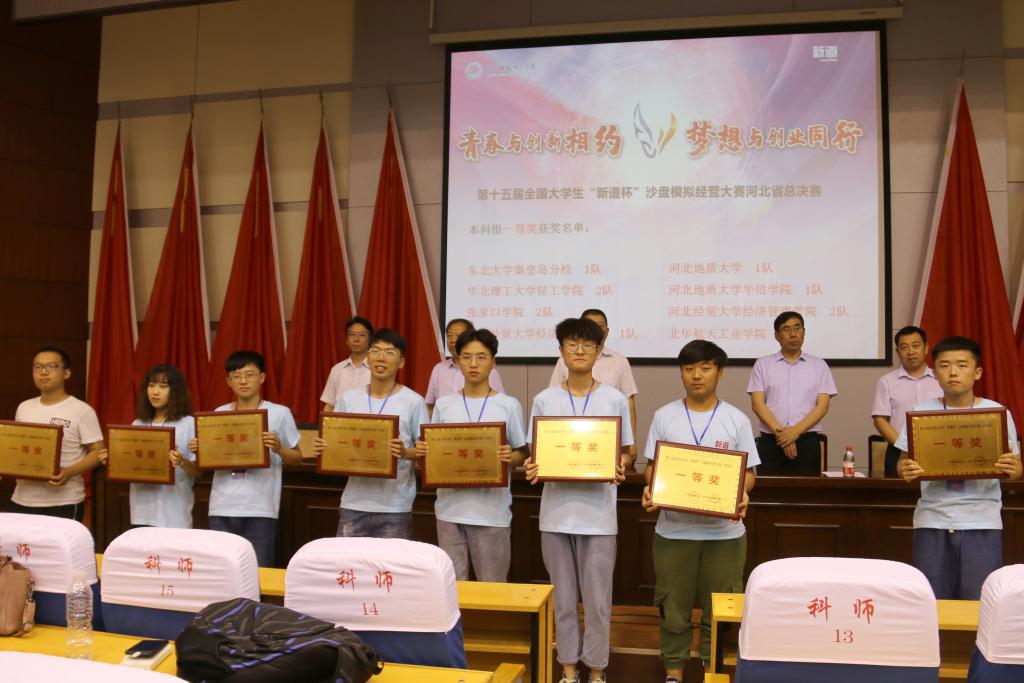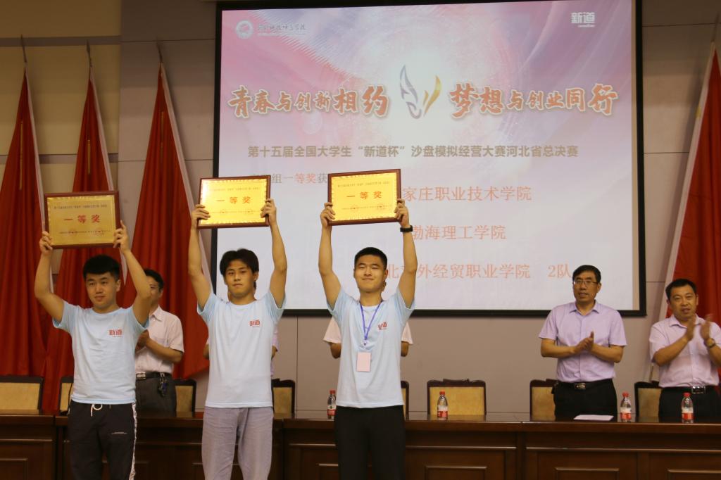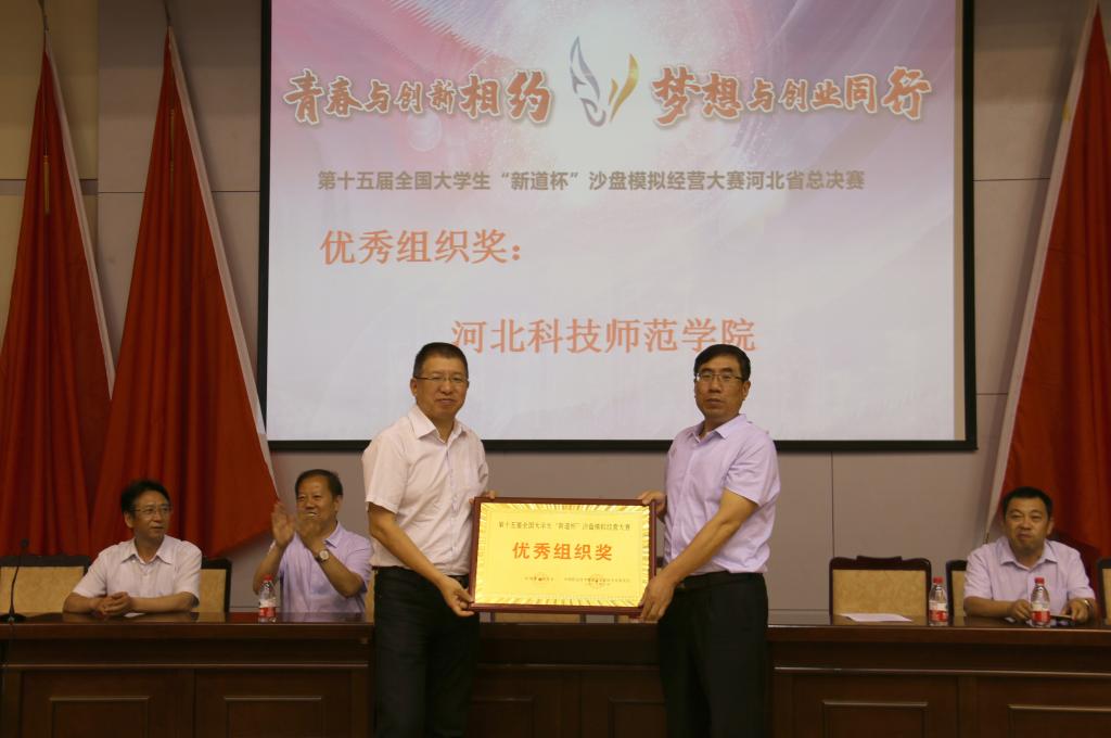 经过参赛选手历时一天的激烈竞争和角逐,东北大学秦皇岛分校1队、河北地质大学1队、华北理工大学轻工学院2队、河北地质大学华信学院1队、张家口学院2队、河北经贸大学经济管理学院2队、河北经贸大学经济管理学院1队、北华航天工业学院1队荣获本科组一等奖,石家庄职业技术学院、渤海理工学院、河北对外经贸职业学院2队荣获高职组一等奖。best365被授予优秀组织奖。与会领导现场为获奖参赛队颁发奖牌。