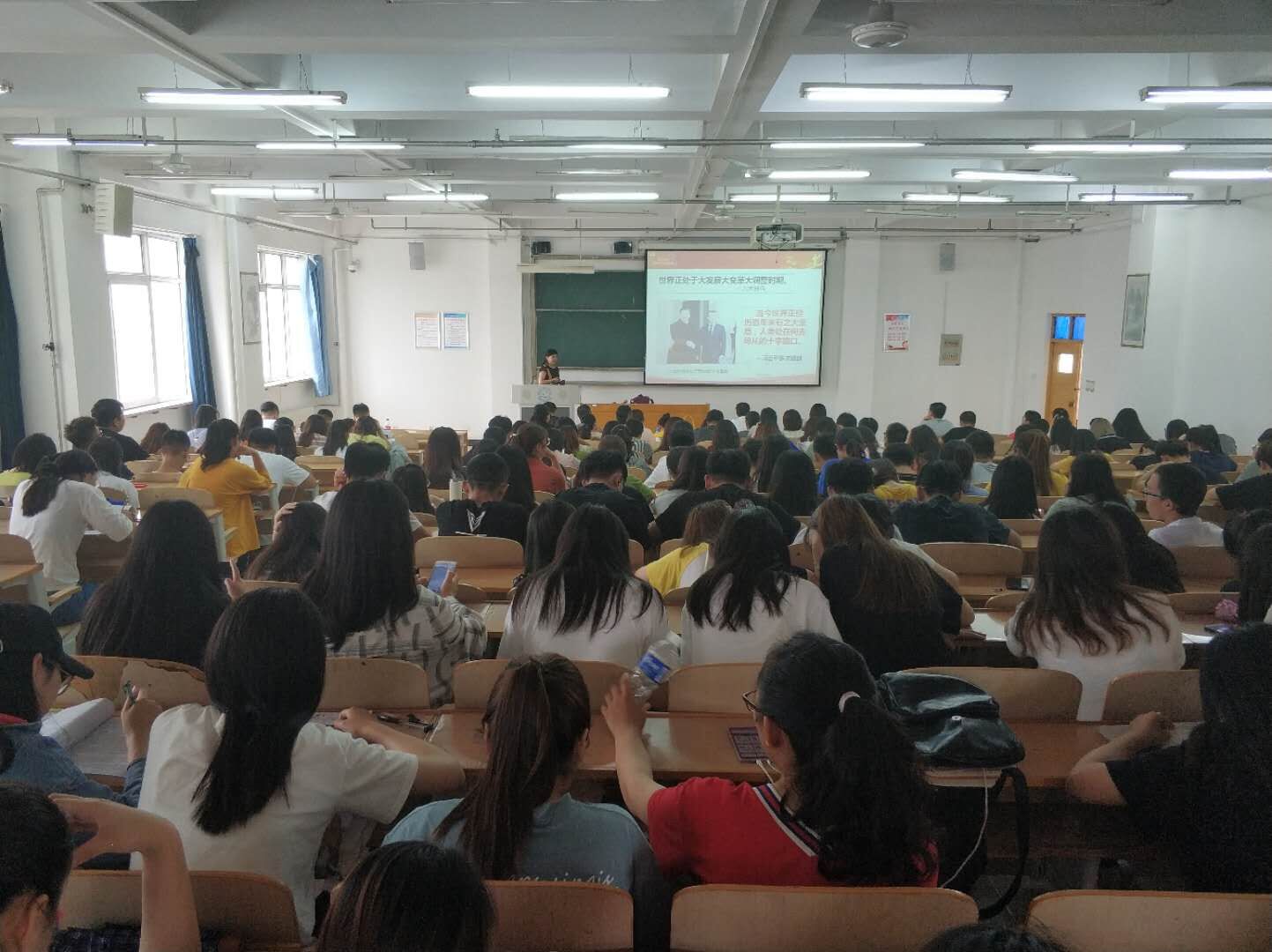 2019年6月13日,工商管理学院举办了“学习新思想 担当新使命”报告会。best365思想政治理论教育宣讲团成员、思想政治理论教学部王丽玲作题为“百年未有之大变局下的中国自信”专题报告。学院全体教师及学生党员、积极分子、学生干部等240余人聆听了报告。