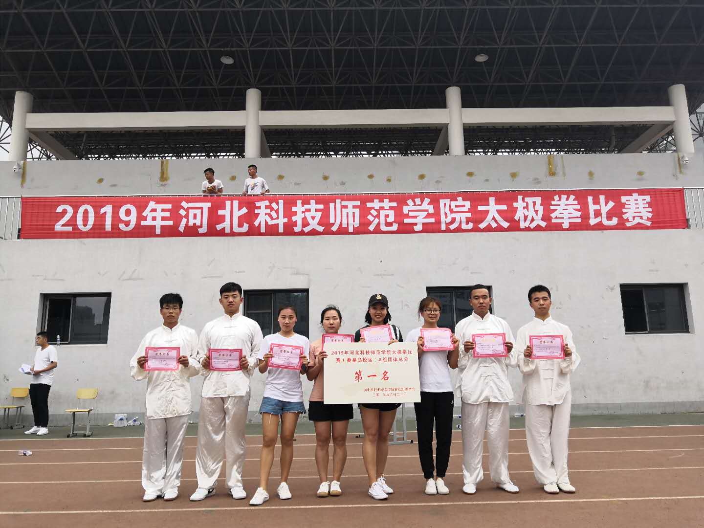 2019年6月20日下午,由校体育运动委员会主办,体育与健康学院承办的2019年太极拳比赛在秦皇岛校区田径场举行,共有来自六个二级学院的12支代表队177名运动员参加比赛。校党委常委、副校长、体育运动委员会主任冯瑞银出席开幕式并讲话,各二级学院的有关领导出席了开幕式。