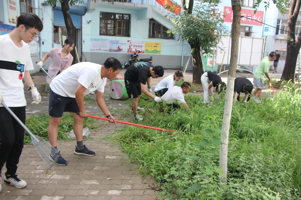 8月3日(周六)上午,为响应秦皇岛市文明办关于开展旅游旺季志愿服务集中行动的号召,best365秦皇岛校区、开发区校区各院系、图书馆、后勤与国有资产馆理处、大学生服务中心等单位的师生党员志愿者三十余人,到文耀里社区开展志愿服务活动。在社区工作人员的带领下,志愿者们拔除了小区宣传栏及活动区域的杂草,并清理了小区内的垃圾及卫生死角。