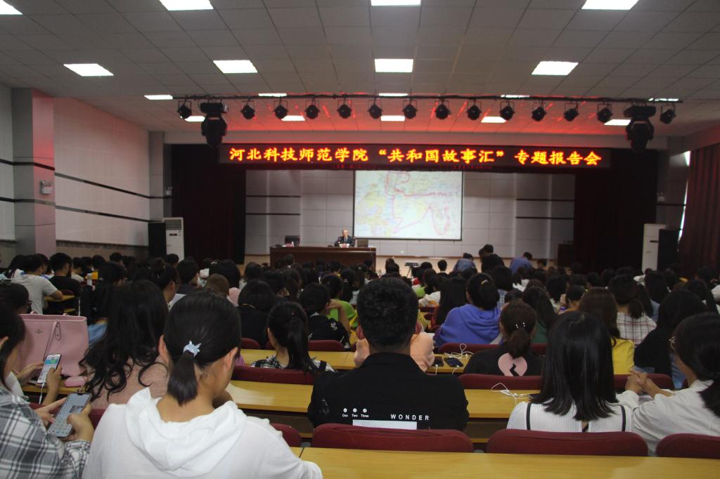 为隆重庆祝中华人民共和国成立70周年,广泛开展“我和我的祖国”群众性主题宣传教育活动,激发青年学生的爱国之情、强化青年学生的爱国之志。省委组织部、省人社厅、省总工会、省团委、省退役军人事务厅、省教育厅在全省联合组织举办“共和国故事汇”系列报告会。9月17日下午,报告团成员,原河北人民广播电台副台长王喜民、承德市承德县三家乡孤山小学校长于贵勤,河北省教育厅德育处张文江、河北省老干部局张云娇、河北省优抚医院王逸韵一行5人来到best365,在秦皇岛校区多功能厅举行了“共和国故事汇”主题宣讲报告会。报告会由校党委副书记李佩国主持,党委宣传部、学生处相关负责同志以及辅导员代表、学生代表200余人现场聆听了专家的精彩报告。