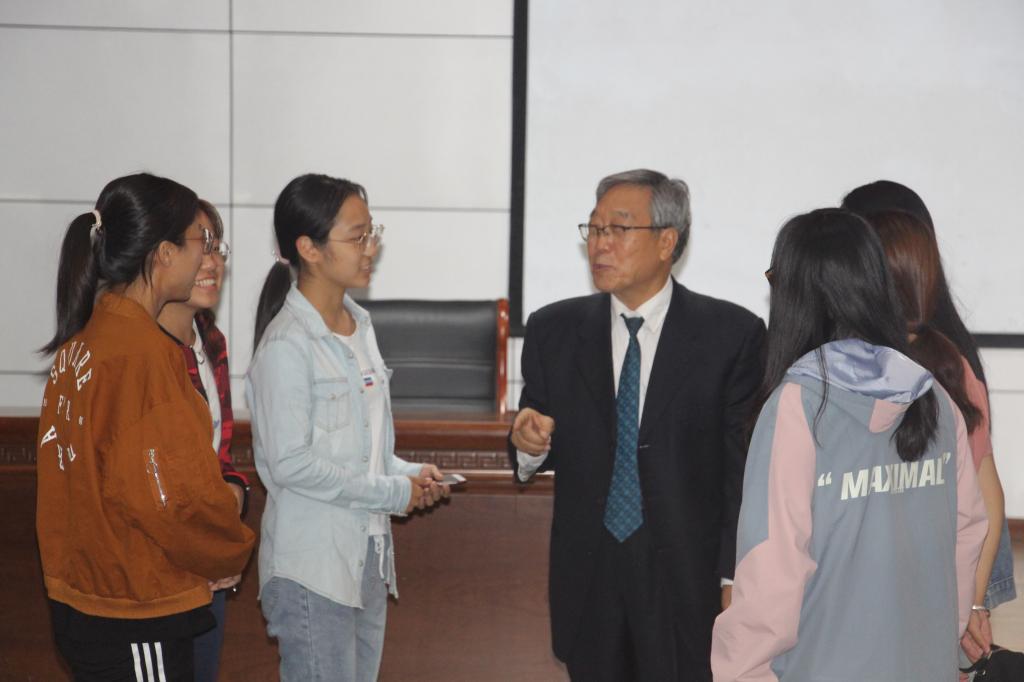 报告现场同学们认真聆听,不时响起热烈掌声。老专家们的爱国热情和舍己报国的精神深深打动了在场的每一位师生。会后,同学们纷纷表示:“两位前辈用他们的亲身经历为我们当代大学生上了一堂生动的爱国主义教育课,让我们深受感动,同时也开阔了视野,增长了见识,坚定了信念!让我们更加热爱我们的祖国,以后要努力成为国家的栋梁!”