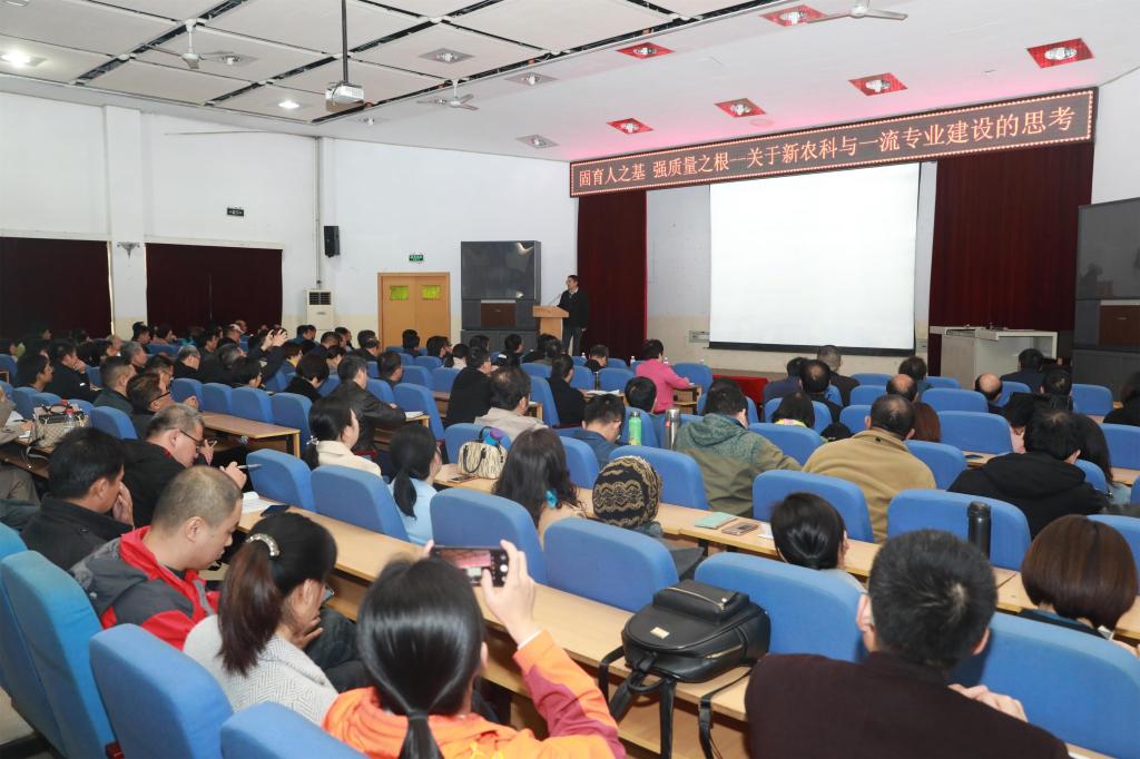 报告会上,江珩研究员从 “一流本科”“金专”“金课”“高地”“四新”等年度热词入手,从背景分析、专业剖析、金专建设和总结思考等四个方面对中国高等教育发展及现状进行了详细介绍,重点就新农科建设和一流专业建设问题为与会师生作了深入浅出的精彩讲解。
