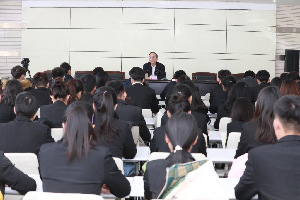 为深入学习贯彻党的十九届四中全会精神,2019年11月28日下午,校党委书记任民在秦皇岛校区图书馆报告厅以“深入学习十九届四中全会精神,坚定四个自信,做有担当的时代青年”为题作专题辅导报告。秦皇岛校区学生班主任,李大钊青年干校第16期培训班秦皇岛校区培训班学员,学生处、团委科级以下干部现场聆听报告。