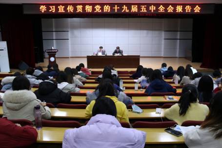 2020年11月27日下午,学校党委常委、纪委书记孙雪莲到财经学院作党的十九届五中全会精神宣讲报告,财经学院师生党员、入党积极分子近200人参加宣讲报告会。