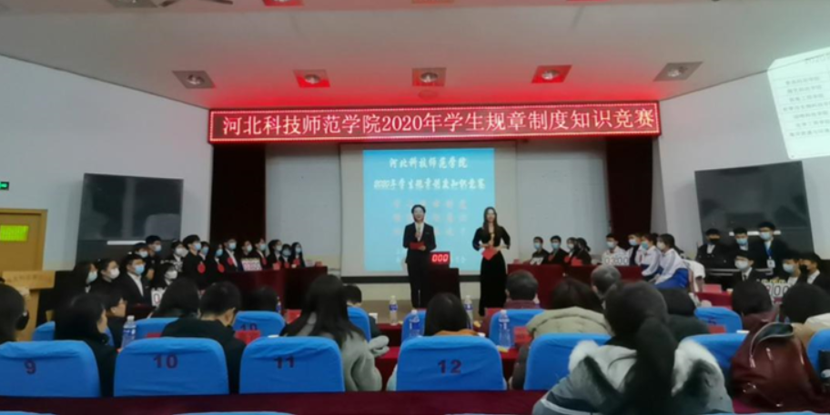 2020年12月11日下午,best365在秦皇岛、昌黎、开发区三个校区同时举办2020年学生规章制度知识竞赛。学生处、团委有关负责人及工作人员、各学院(系)学生工作主管领导、有关辅导员(班主任)、2020级新生代表等300余人在三个校区观看了比赛。