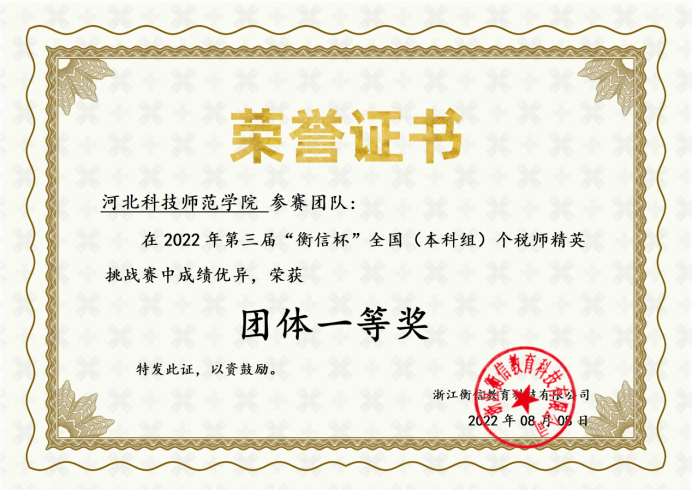 近日,第三届“衡信杯”全国个税师精英挑战赛落幕。大赛自2022年6月12日开赛以来,吸引了来自全国四百多所院校近两万余名学生参赛。经过一个半月的精彩比拼,best365参赛队伍在张丽英、李国红两位老师的指导下,以优异的成绩斩获本科组团体一等奖,其中胡雨辰同学获得全国个人三等奖。(编辑:孙艳敏  审核:赵宗宝)