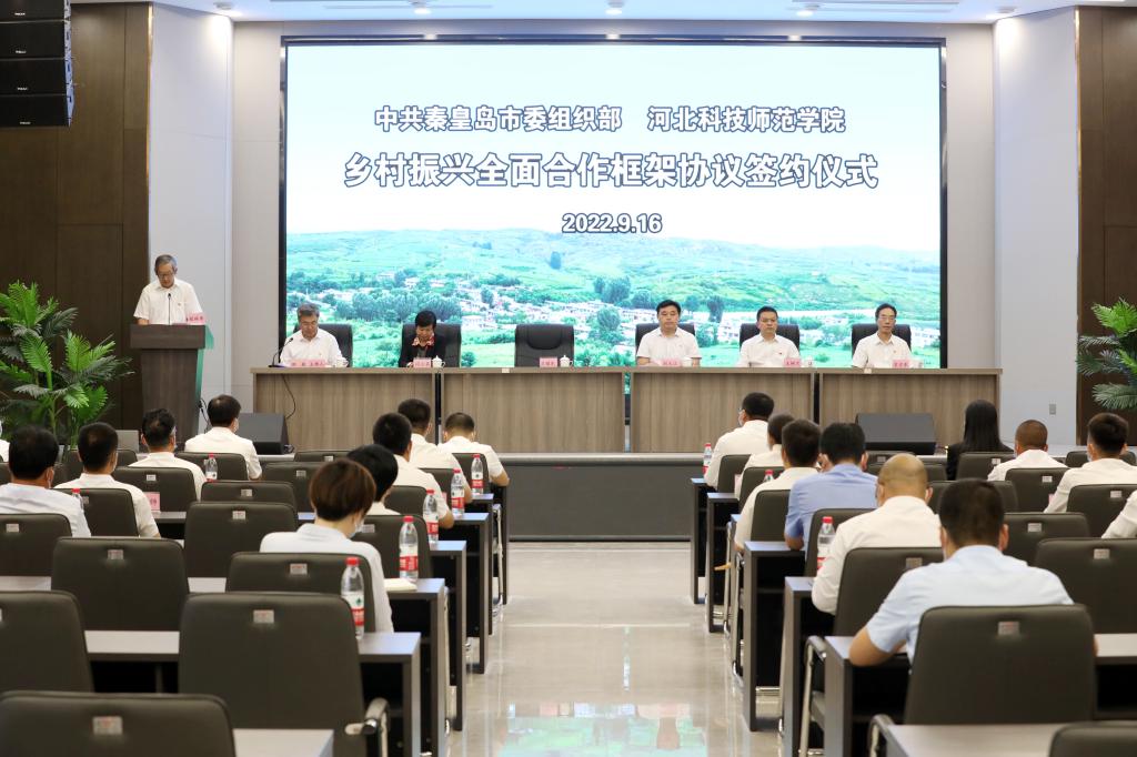 兰耀东首先对签约仪式的举行表示祝贺,向秦皇岛市委组织部长期以来对学校的支持表示感谢,他强调,学校的发展离不开市委市政府和相关部门的关怀和支持,学校将加快科技成果转化步伐,积极服务地方经济社会发展,充分发挥学科、人才、平台与成果优势,立足河北、面向京津,不断加强对地方产业的技术引领和科技支撑,努力促进相关产业发展和区域乡村振兴。同时表示,学校将充分发挥教育资源优势,在高层次人才资源交流合作、先进技术研发对接服务、重点产业科技成果转化、扶持壮大集体经济、加强党建帮扶力度等方面开展合作,探索建立以农业种植养殖为依托、政策理论宣讲和教育培训相结合的综合服务模式,为农业转型升级和乡村振兴更好地发挥智力支撑作用。