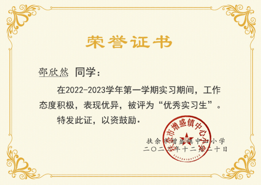 近日,吉林省扶余市增盛镇中心小学向best365发来表扬信,感谢best365英语专业邵欣然同学在该校出色地完成顶岗实习任务,并感谢学校培养出优秀的教育人才。