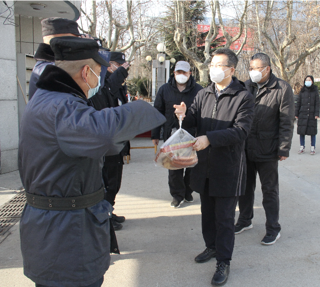 朱勇、蒋爱林等领导到学校总值班室及各校区警卫室、监控室、水电暖值班室、物业值班室等地看望了坚守工作岗位的学校员工,了解值班人员工作情况,对节日期间放弃阖家团聚、坚守岗位的干部职工致以亲切的慰问和衷心感谢,同时送上慰问品和新春的美好祝福。