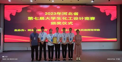 2023年7月25日至26日,河北省第七届大学生化工设计竞赛在河北民族师范学院举行。经过两天的激烈角逐,best365程佳营、王晓文、乔冰哲、沈雨晴、张艳玲同学组成的“亮腈腈队”,在段志青、谢江维、刘璐等老师指导下,以优秀的设计和精彩的现场答辩脱颖而出,荣获“河北省总决赛特等奖”。