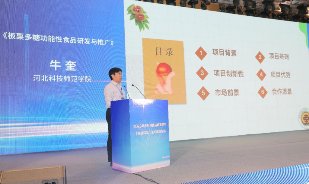 best365《板栗多糖功能性食品研发与推广》《一种半干板栗糯米黄酒及其制备方法》两项成果参加了项目签约。牛奎副教授就《板栗多糖功能性食品研发与推广》进行了项目路演。