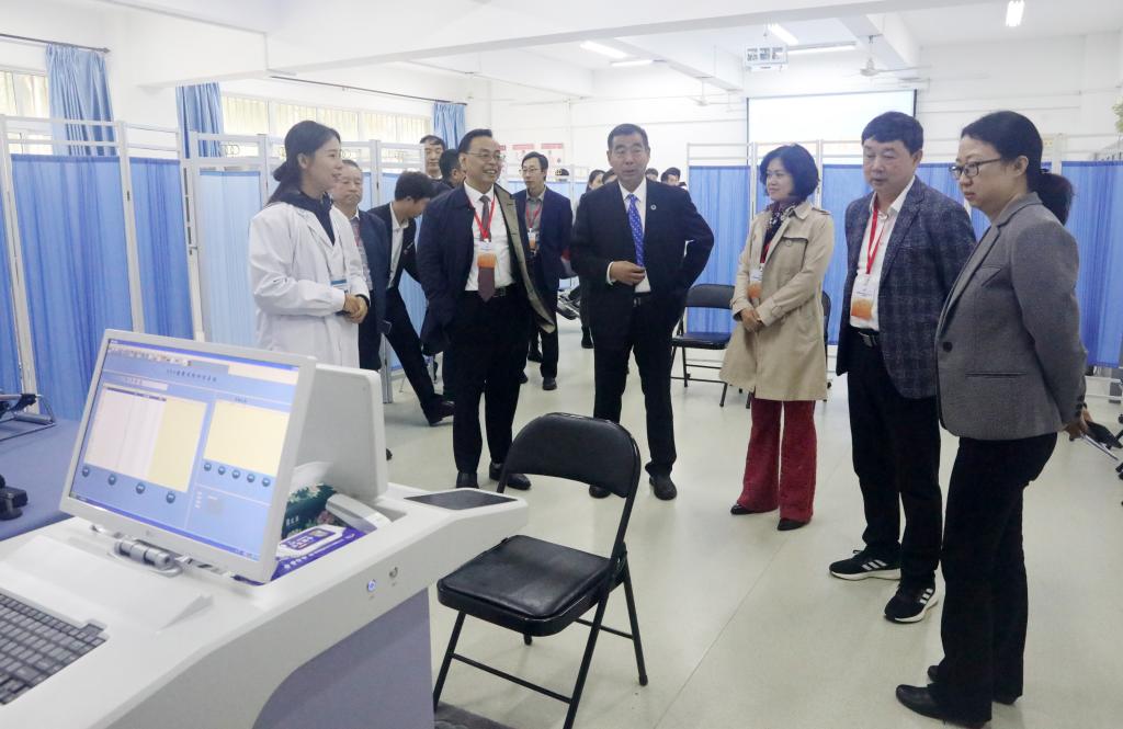 见面会后,专家组实地考查了运动人体实验室、健康风险评估中心(秦皇岛校区体育与健康学院)、微格教室、书写技能训练中心、虚拟演播室、远程教研系统等校内实践育人基地及教学场所,与相关领导、老师进行了交流。