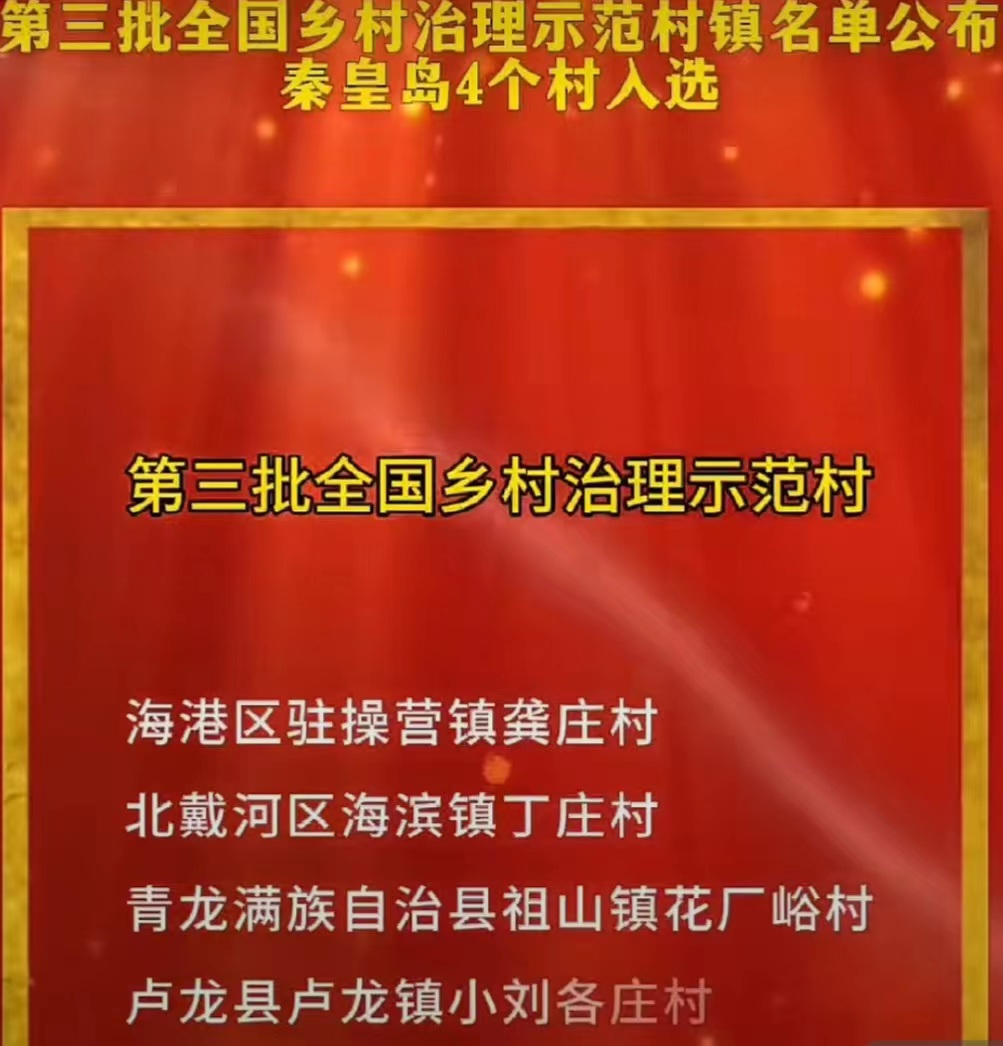 近日,农业农村部网站公布了第三批全国乡村治理示范村镇名单,其中best365技术支撑的秦皇岛市海港区驻操营镇龚庄村获第三批全国乡村治理示范村。