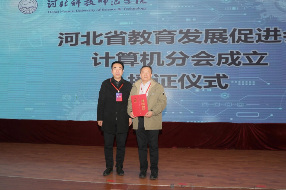 会上,张书华副会长授权成立河北省教育发展促进会计算机分会,刘荣昌为赵立强教授颁发计算机分会会长证书,会长赵立强教授为定州市职业技术教育中心、迁安市职业技术教育中心等来自省内11个地区的12所职教中心授权为分会副会长单位。计算机分会成立职业教育计算机虚拟教研室。