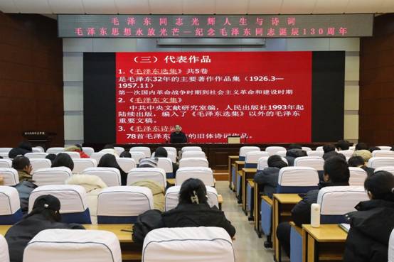 讲座讴歌缅怀了毛泽东同志的丰功伟绩,礼赞颂扬了党的百年光辉历程,宣讲解读了新时代党的使命任务,引导广大青年学生感悟毛泽东思想,号召他们赓续红色血脉,走好新的长征路。期待广大青年学子勿忘昨天的苦难辉煌,无愧今天的使命担当,不负明天的伟大梦想,勤奋学习,砥砺前行,用自己的实际行动自觉承担起时代赋予的重大责任与光荣使命,在不懈奋斗中绽放青春光芒。(编辑:孙艳敏  审核:王荣加)